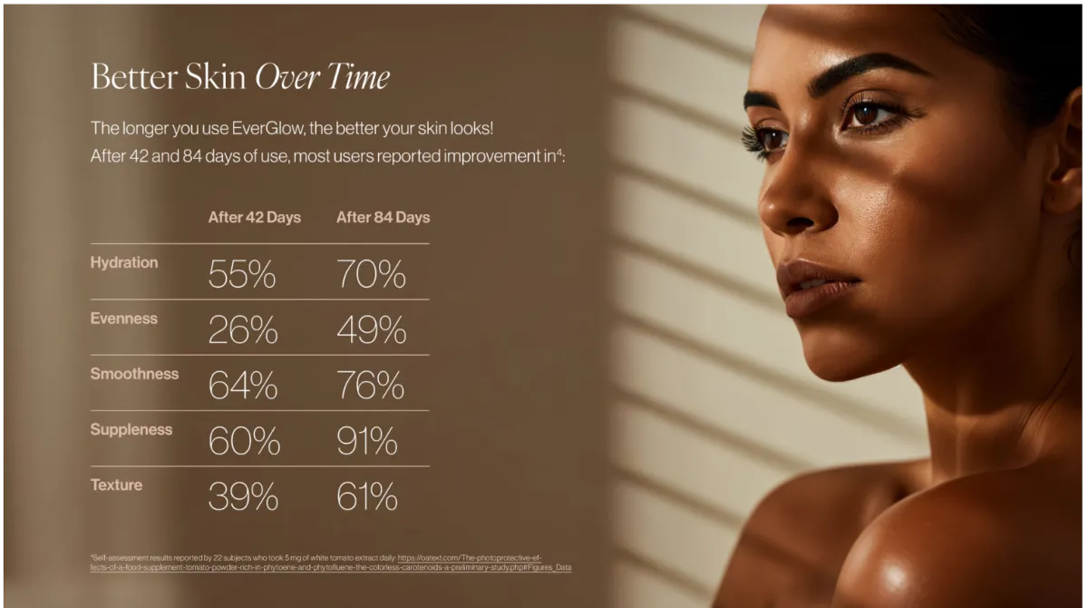 After 6 weeks of drinking everglow 1x day Ann has regained her youthfulness